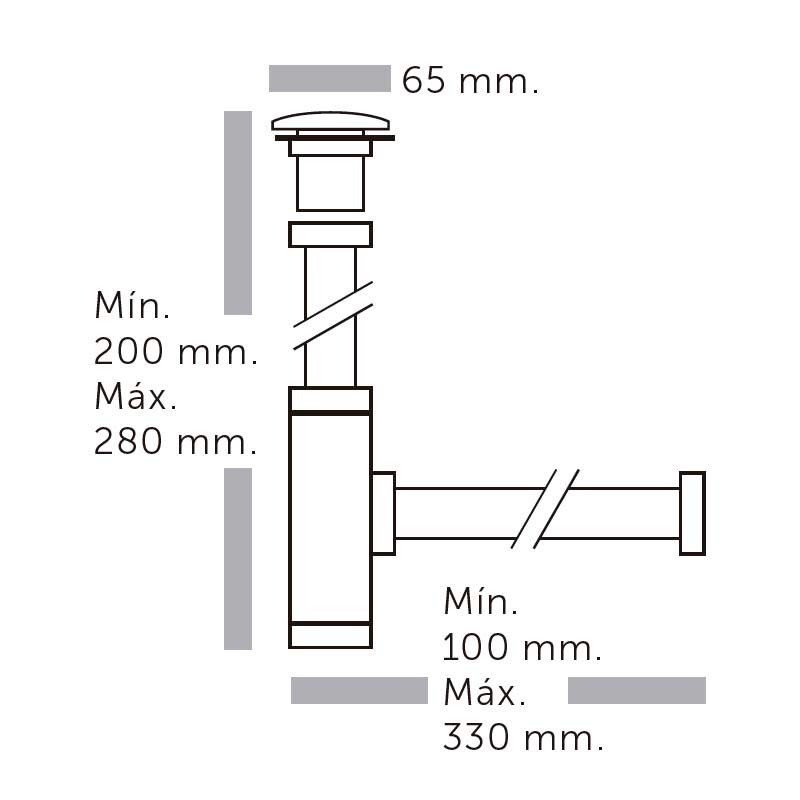 Jeu de siphon pour lavabo de salle de bains avec une couleur de finition et de chrome universel vanne de 65 mm de diamètre inclus.