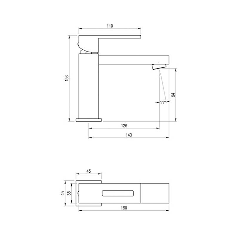 Développez Mélangeur de lavabo avec finition extérieure chromée série Nitro à installer sur l'étagère du lavabo.