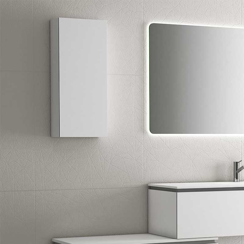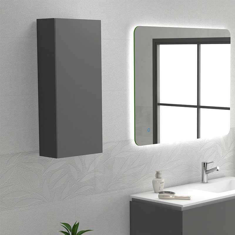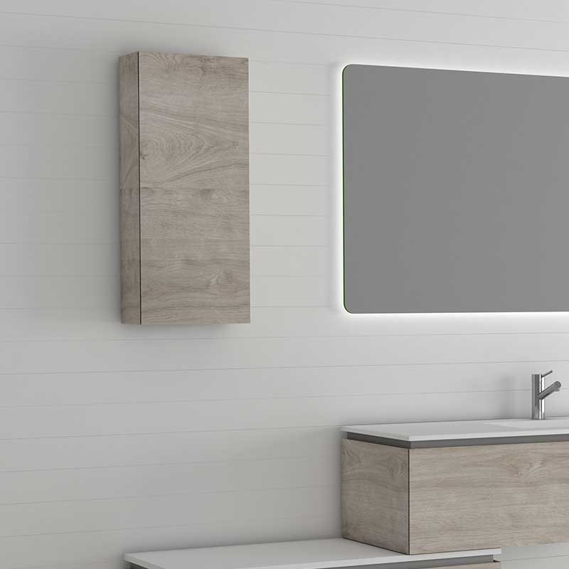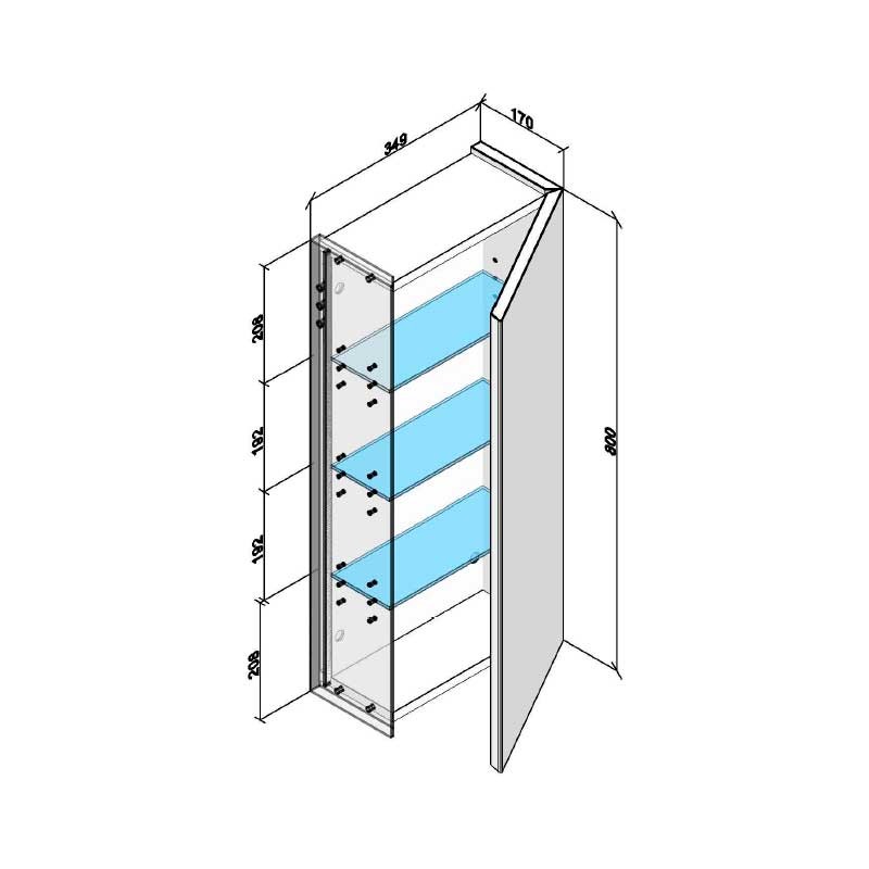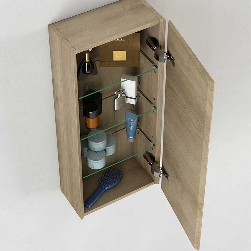 Développez Meuble à accrocher sur le mur du modèle Sigma avec 1 porte, charnières avec système de fermeture amortie et 3 tablettes en verre à l'intérieur.