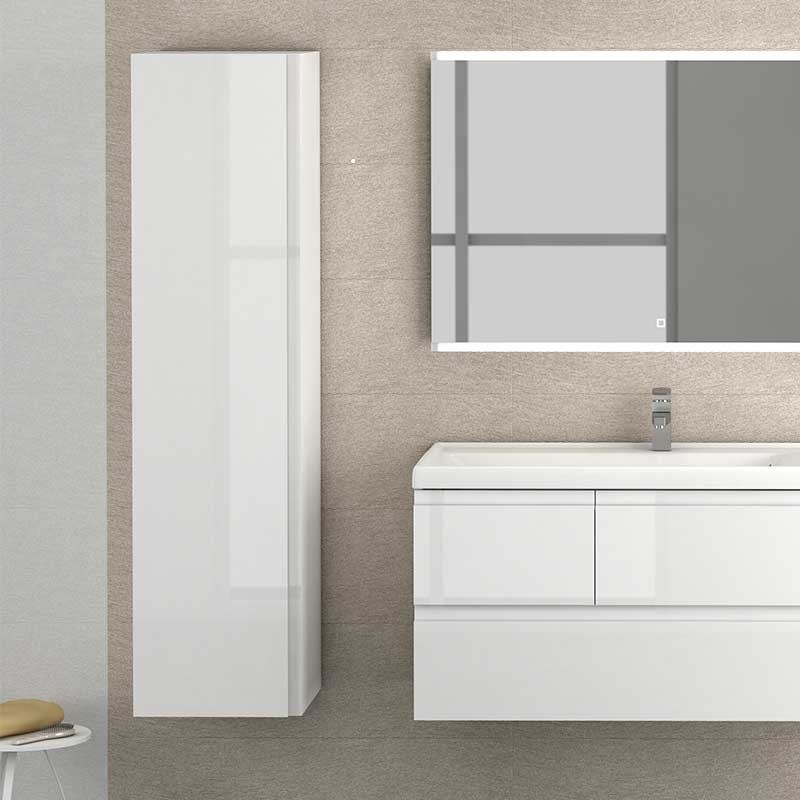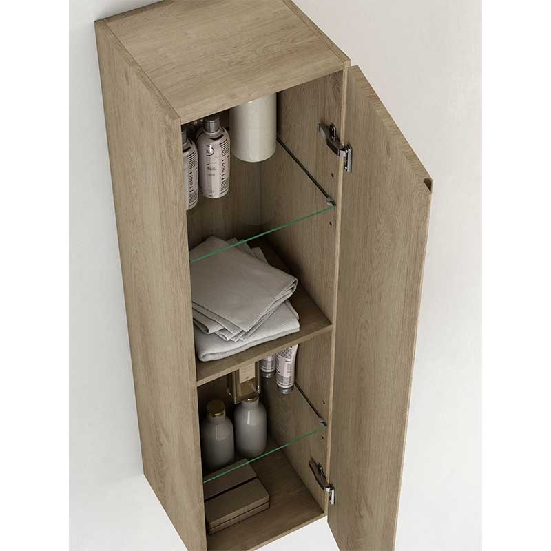 Développez L'unité de la colonne d'accrocher au mur modèle Caire avec 1 porte avec poignée intégrée, charnières avec système de fermeture amortie et 2 tablettes en verre à l'intérieur.