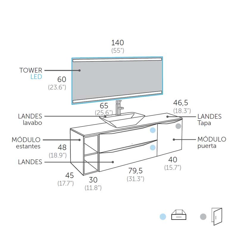 - 1 module Landes 40 cm 1 porte