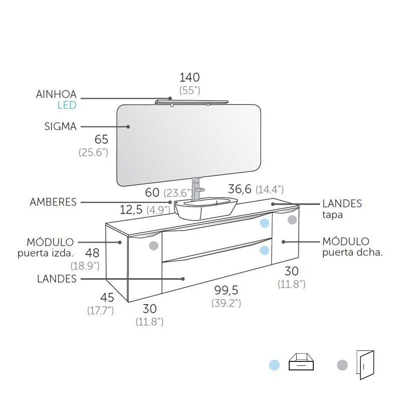 - Les meubles suspendus à la structure de 19 mm d'épaisseur