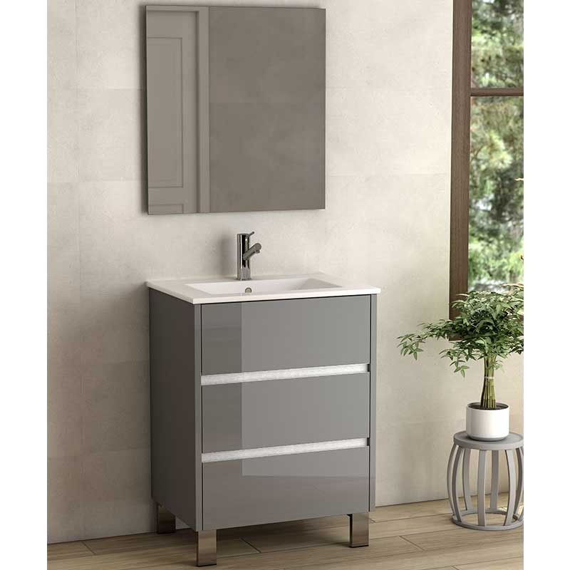Développez Les meubles pour les planchers de salle de bains modèle Scorpion avec 3 tiroirs et un grand lavabo de comptoir en céramique. Miroir de la Lune optionnel.