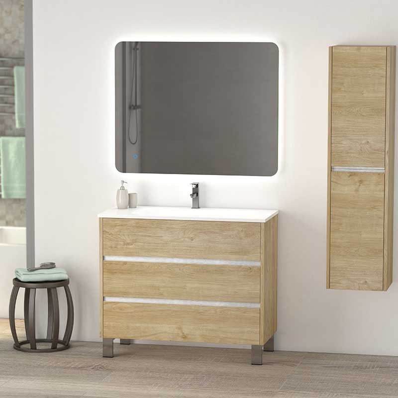 Développez Les meubles pour les planchers de salle de bains modèle Scorpion avec 3 tiroirs et un grand lavabo de comptoir de la résine. Miroir led Vérone optionnel.