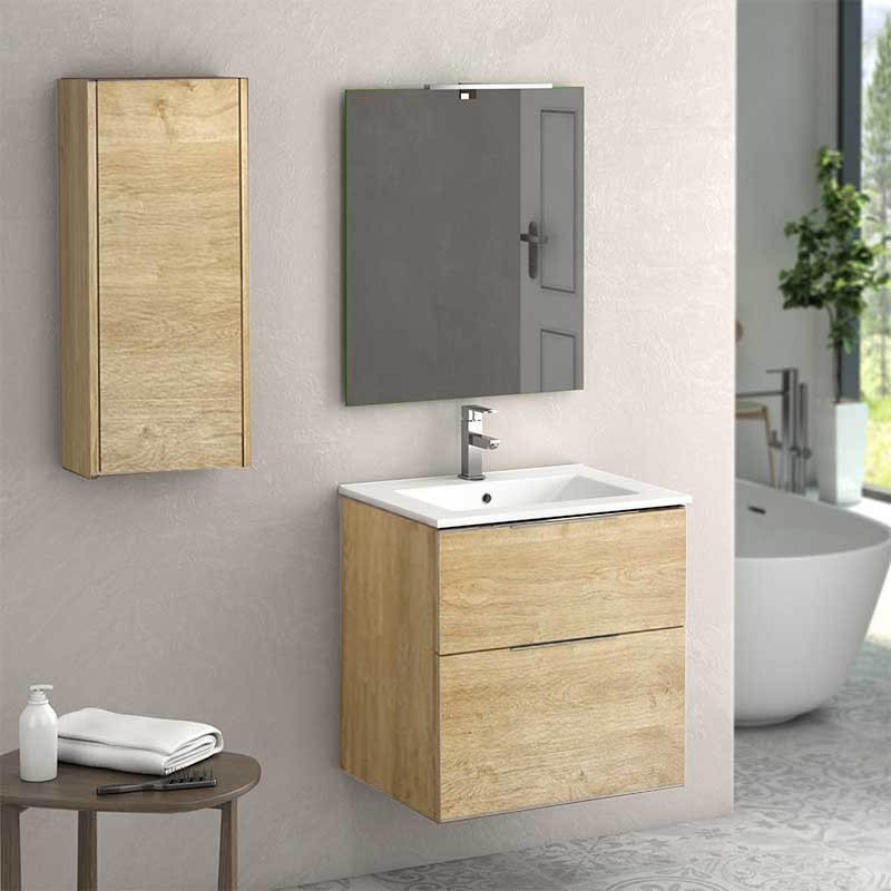 Développez Meuble suspendu de salle de bains modèle Galsaky avec 2 grands tiroirs, plus lavabo de comptoir en céramique ultra-mince. Miroir de led, et des éléments de mobilier pour la pendaison optionnel.