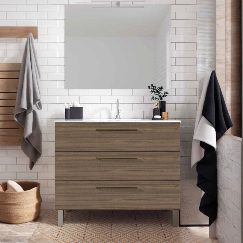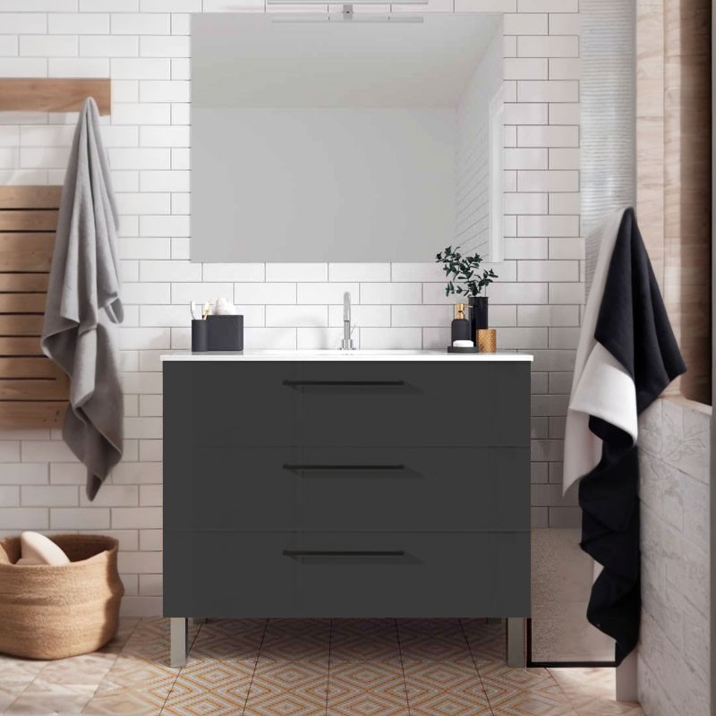 Développez armoire à 3 tiroirs de différentes tailles et finitions. Miroir, applique led et mobilier auxiliaire pour suspendre non inclus.