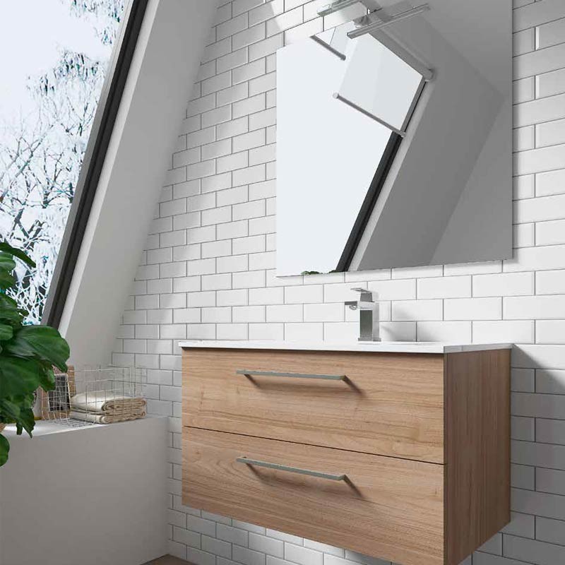 Développez Armoire suspendue avec 2 tiroirs de différentes tailles et finitions. Miroir, applique LED et mobilier auxiliaire suspendu en option.