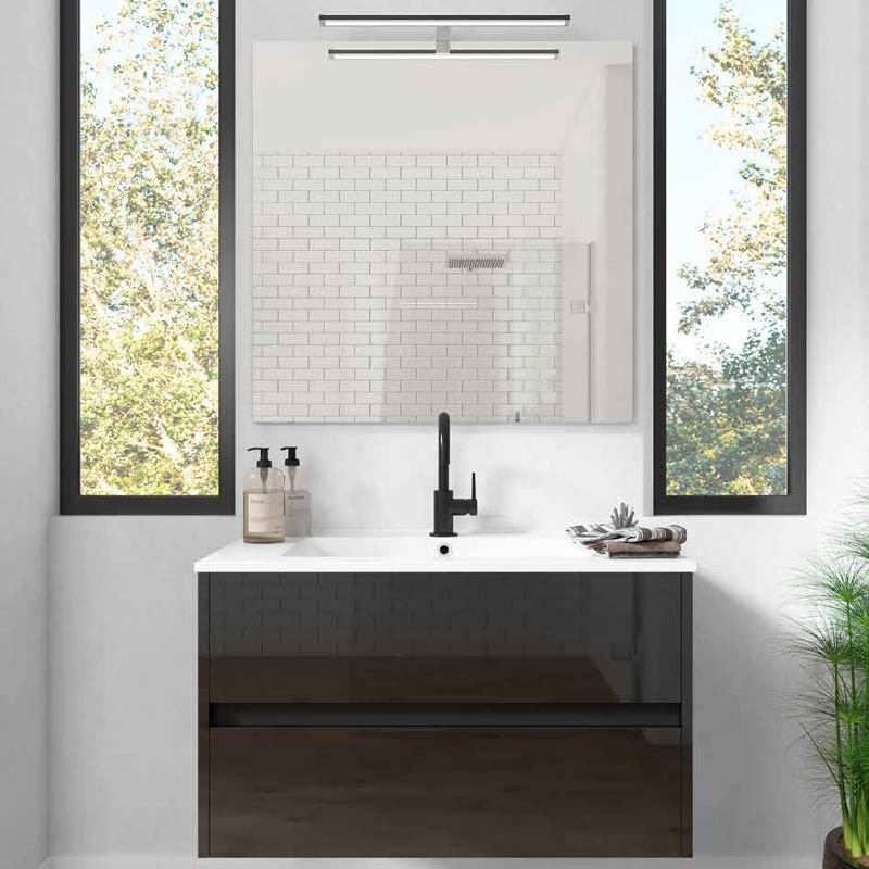 Développez Armoire suspendue à 2 tiroirs de différentes tailles et finitions. Miroir, applique murale à LED et mobilier auxiliaire en option pour suspendre.