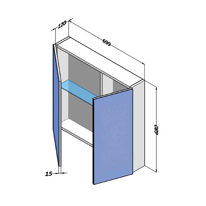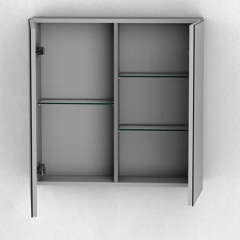 Développez Meubles de dressing salle de bain 2-modèle de porte Flash avec des cristaux d'environ 3 mm au-dessus des portes de 12 mm, équipé avec système de charnière souple-fermeture, et de 3 étagères en verre.